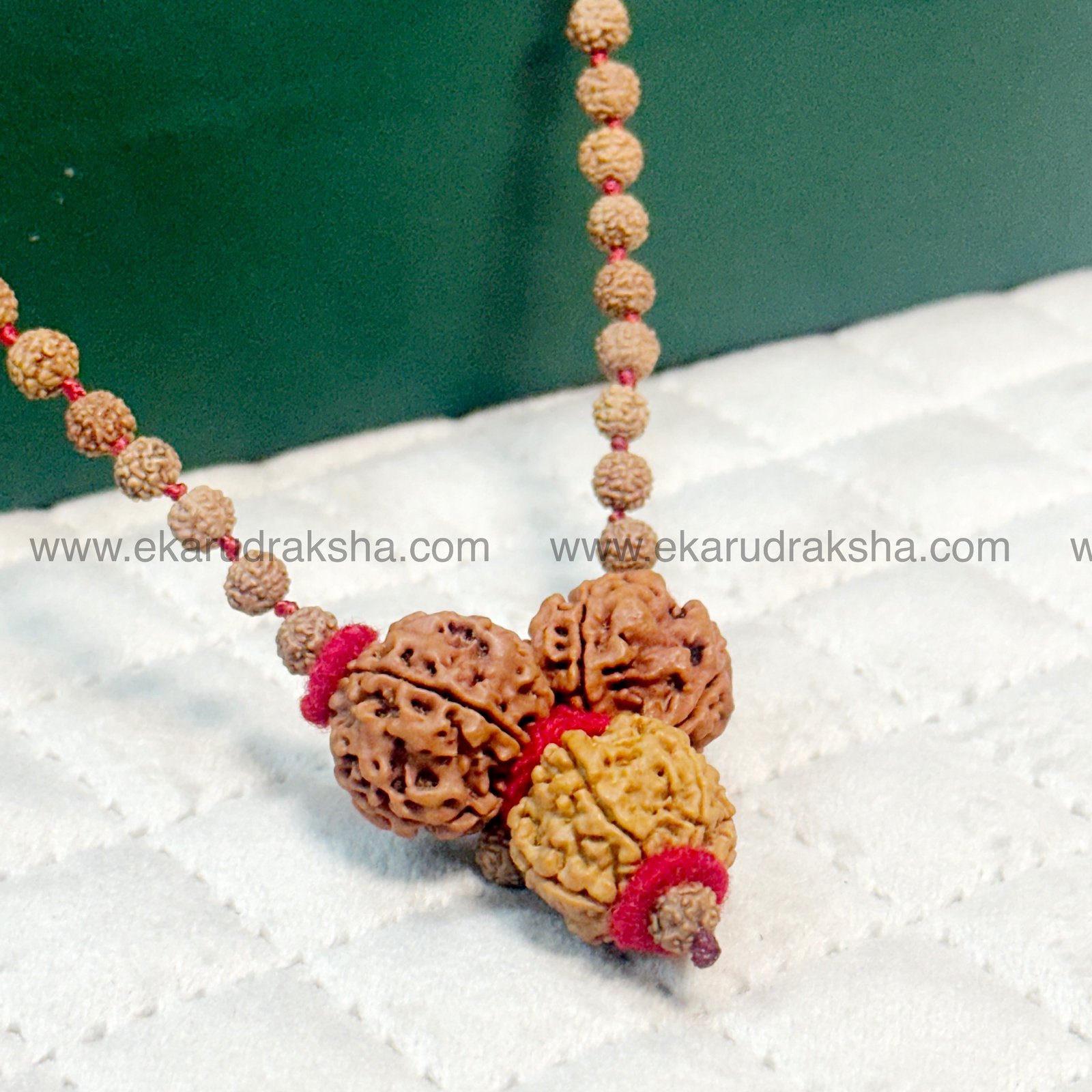 This sacred Rudraksha Mala is a unique combination of 4 Mukhi, 5 Mukhi, and 6 Mukhi beads—each sourced from the divine lands of Nepal and lab-certified for authenticity and purity. Carefully strung together as a powerful Kavach (spiritual shield), this mala is designed especially for students, professionals, government exam aspirants, and those seeking overall well-being.