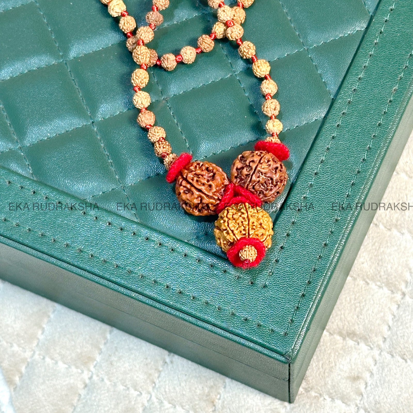 This Mala acts as a holistic Kavach—protecting your aura while aligning your mind and body for clarity, focus, and confidence. Whether you're preparing for competitive exams, striving for career success, or seeking spiritual balance, this Rudraksha combination provides the support you need.
