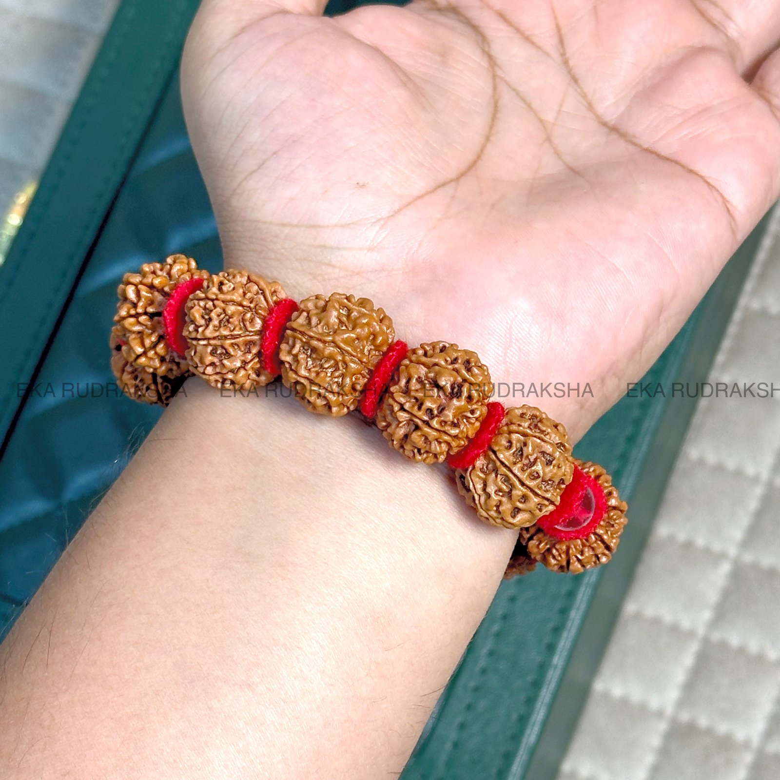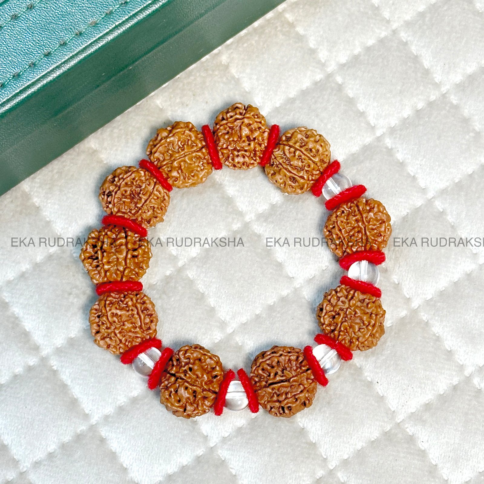 The Nepali 7 mukhi rudraksha bracelet is a powerhouse of energy. This bracelet is made with pure nepal rudraksha and sphatik crystal in between. The beads are separated with woolen spacers. Wearing this rudraksha will attract you wealth and prosperity in life.