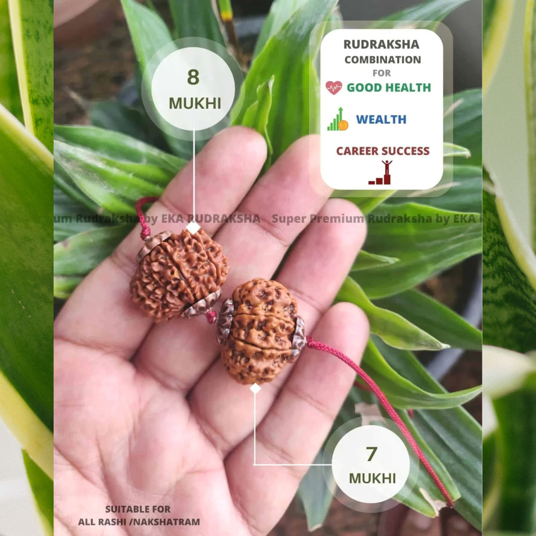 Want good health, immense wealth & career growth ?. The wear this combination of 7 Mukhi Rudraksha & 8 Mukhi Rudraksha over your neck to get the above by the blessings of Mahadev. This Rudraksha beads are original genuine pieces from Nepal and selected specifically for wearing purpose. The Rudraksha will come with a Lab tested Certificate of Authenticity.