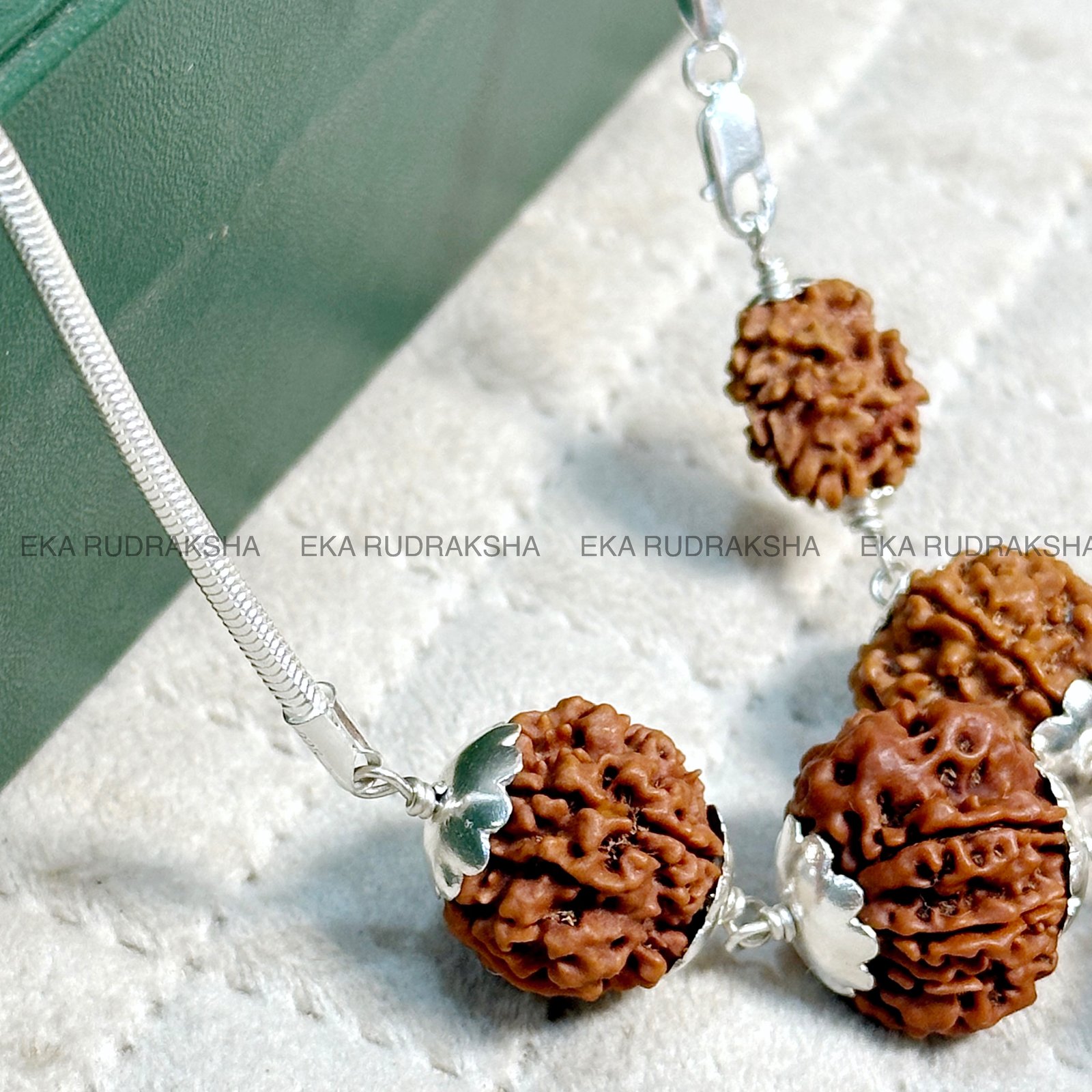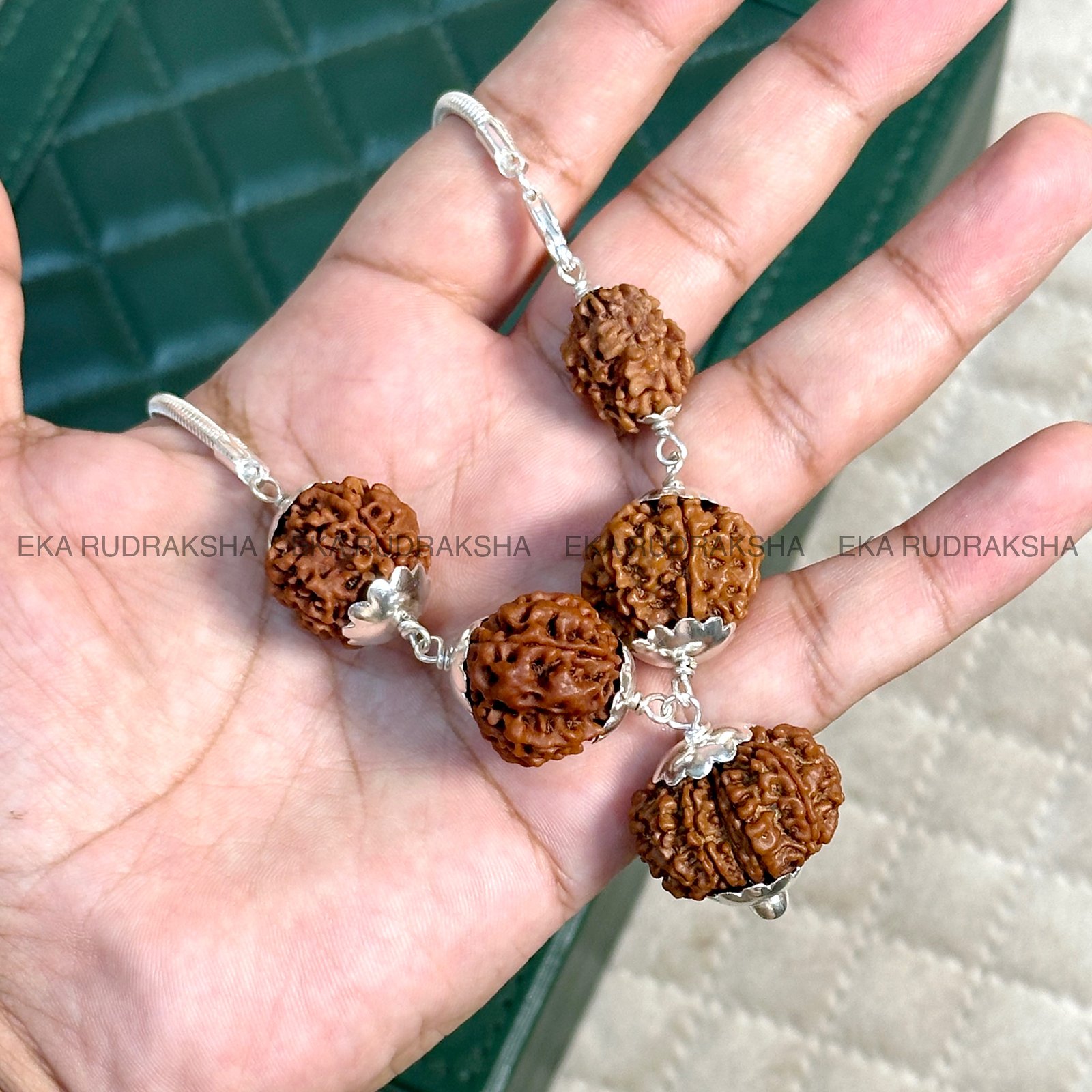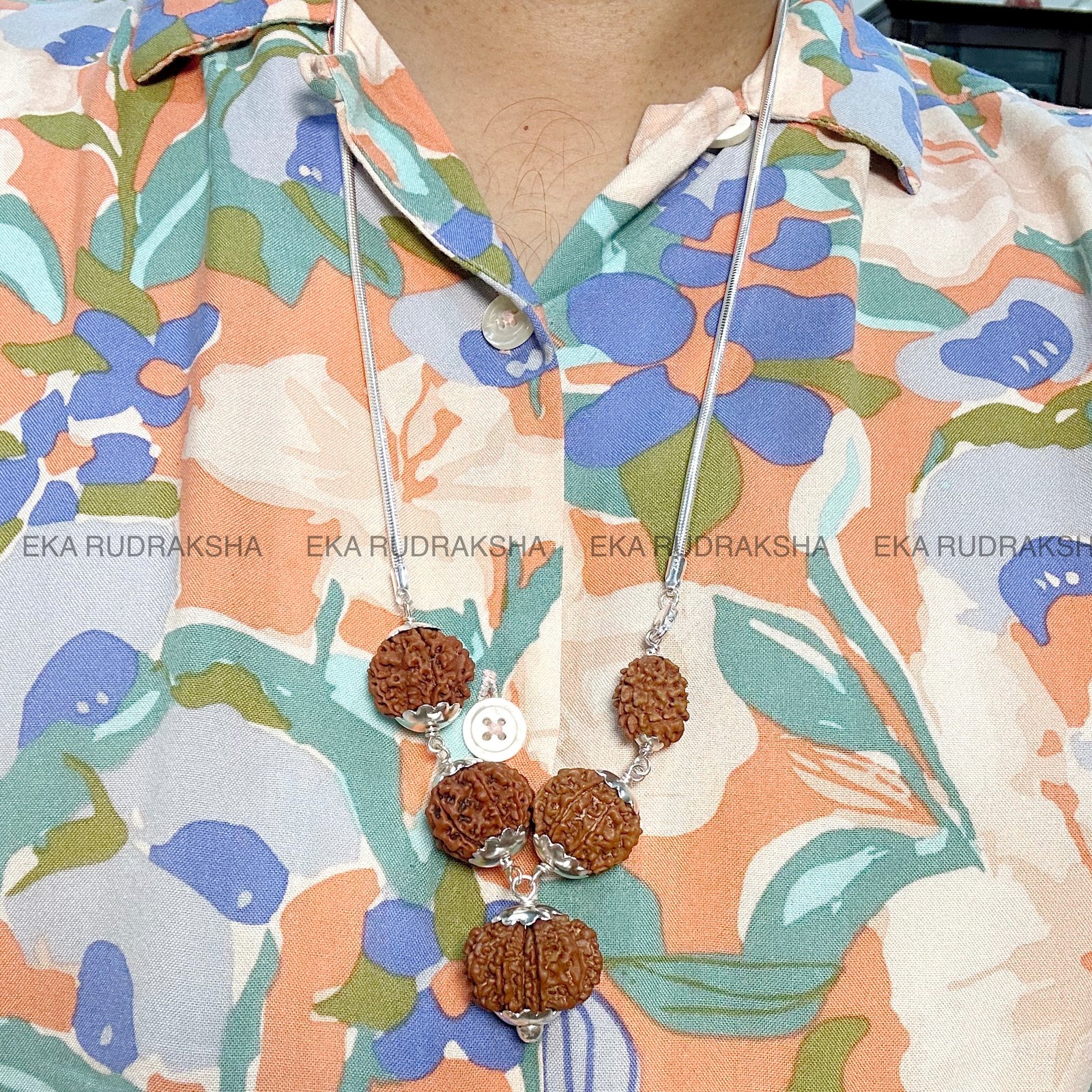 Together, these five Rudraksha beads form a balanced spiritual powerhouse—helping the wearer in personal, professional, financial, and health aspects of life. The silver capping not only enhances durability but also amplifies the spiritual vibrations, while the silver chain makes it elegant for daily wear.