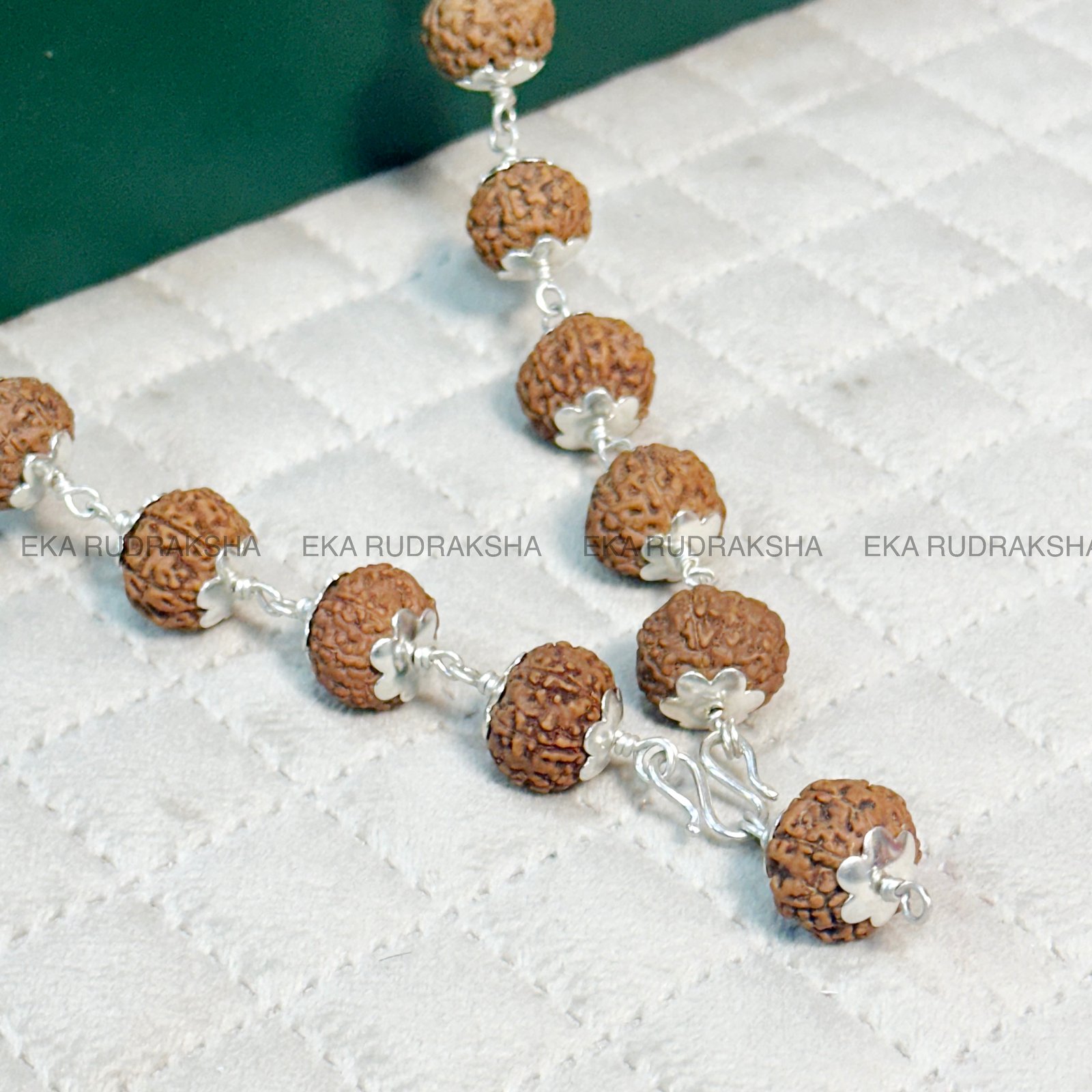 The combination of Rudraksha beads and pure silver makes this necklace an ideal choice for those seeking to balance the energies of their body and mind. This necklace is particularly beneficial for individuals affected by the malefic influence of Saturn, as it helps alleviate the negative effects and bring relief from hardships associated with this planet.