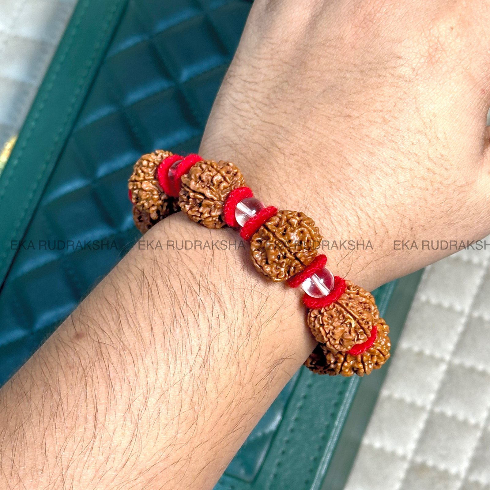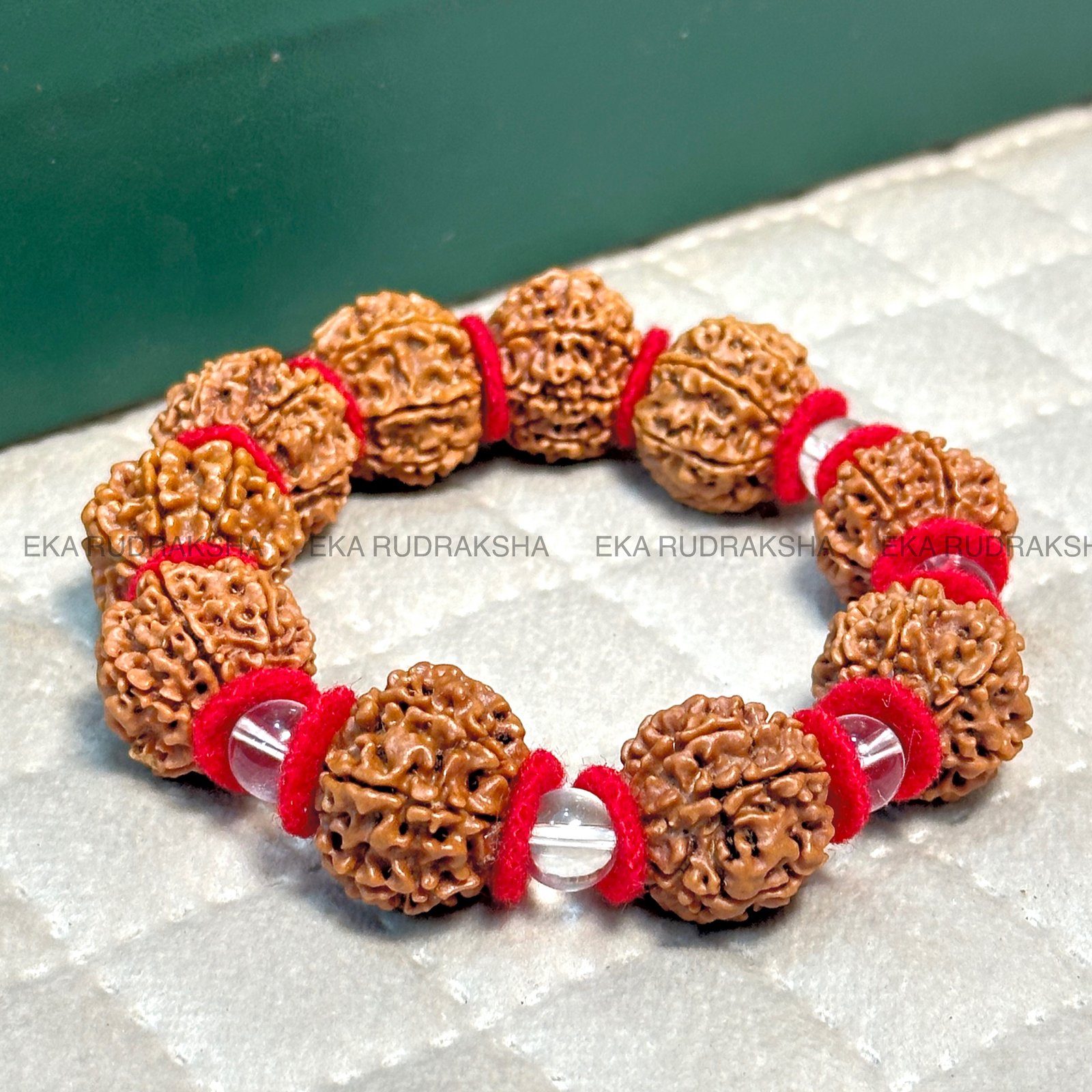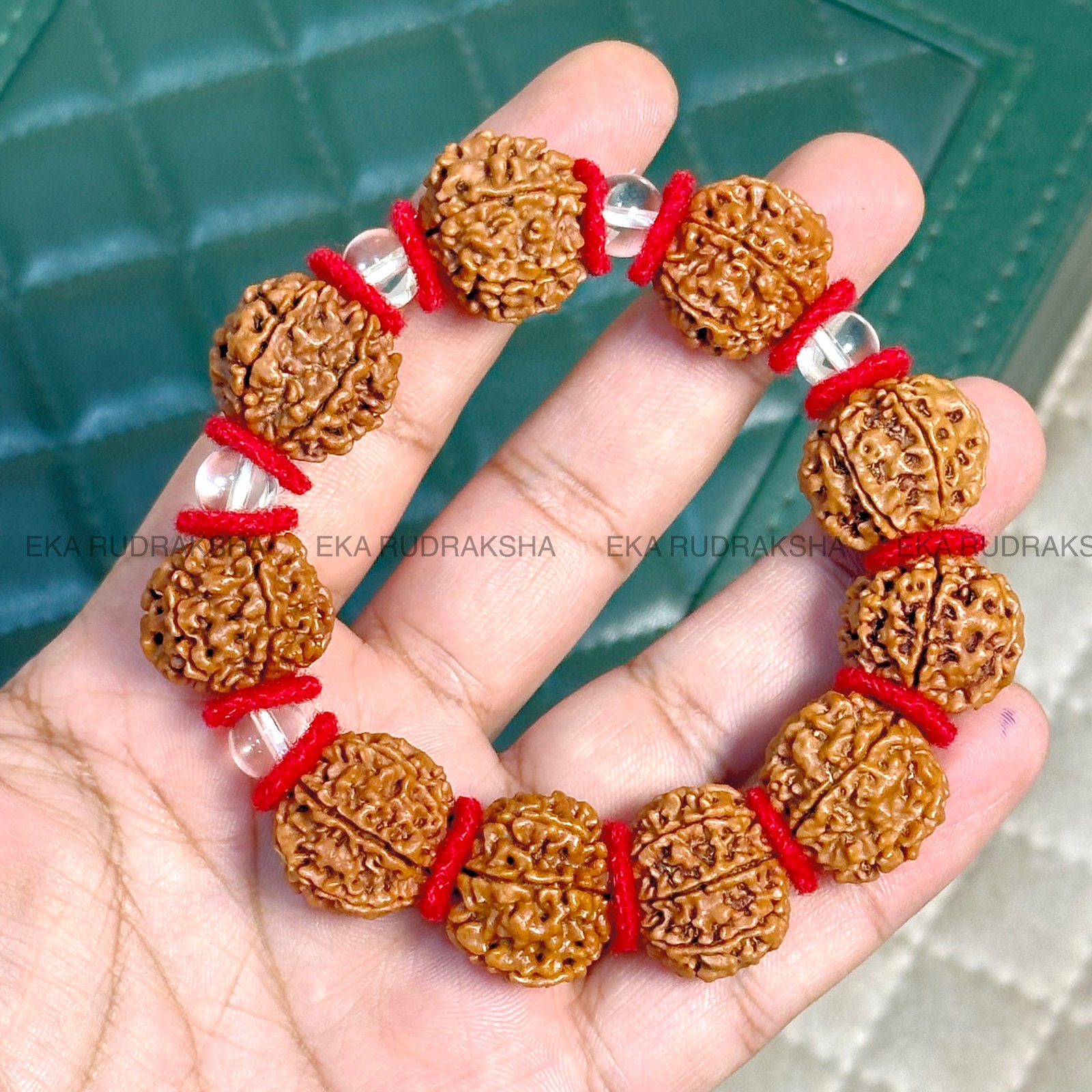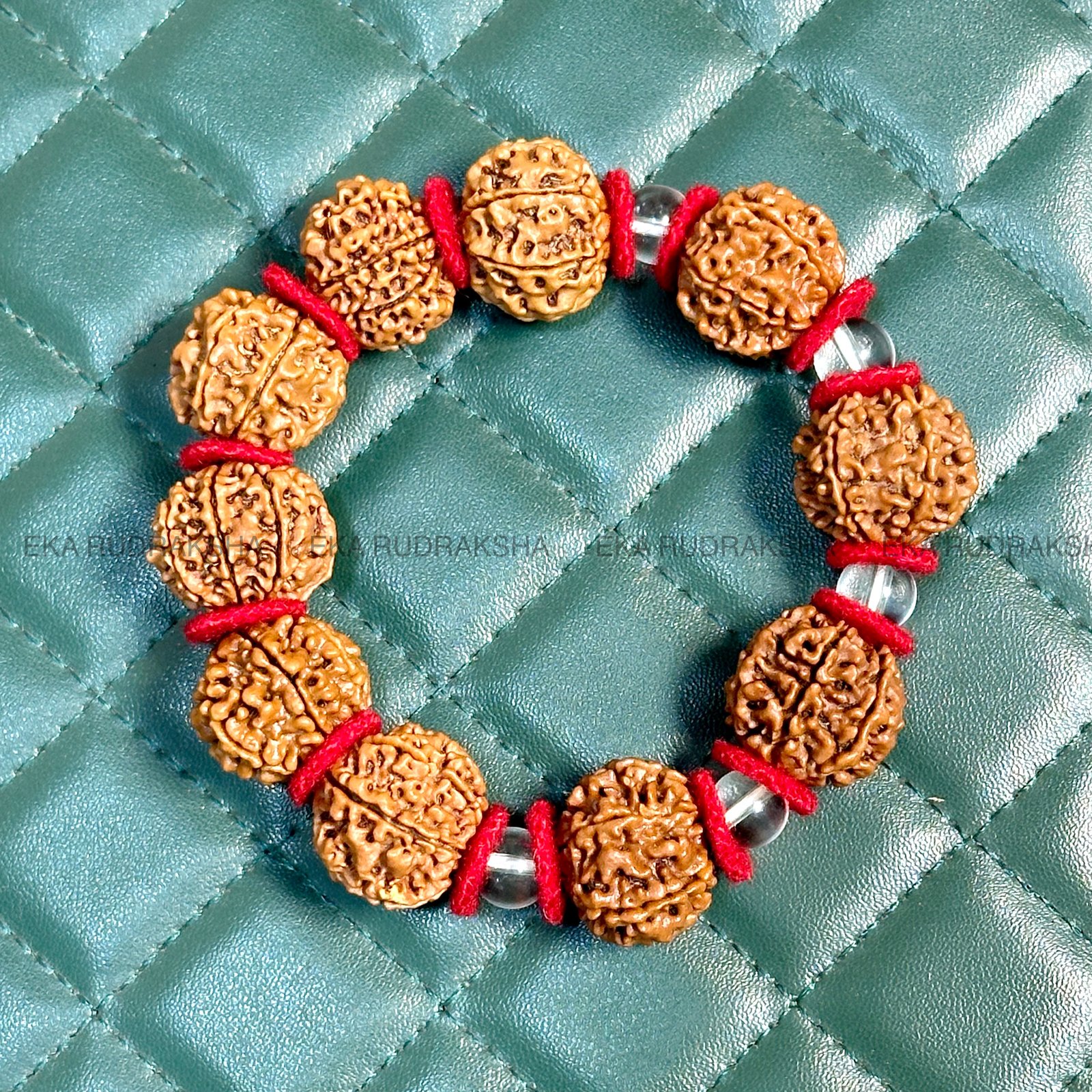 The Nepali 7 mukhi rudraksha bracelet is a powerhouse of energy. This bracelet is made with pure nepal rudraksha and sphatik crystal in between. The beads are separated with woolen spacers. Wearing this rudraksha will attract you wealth and prosperity in life.